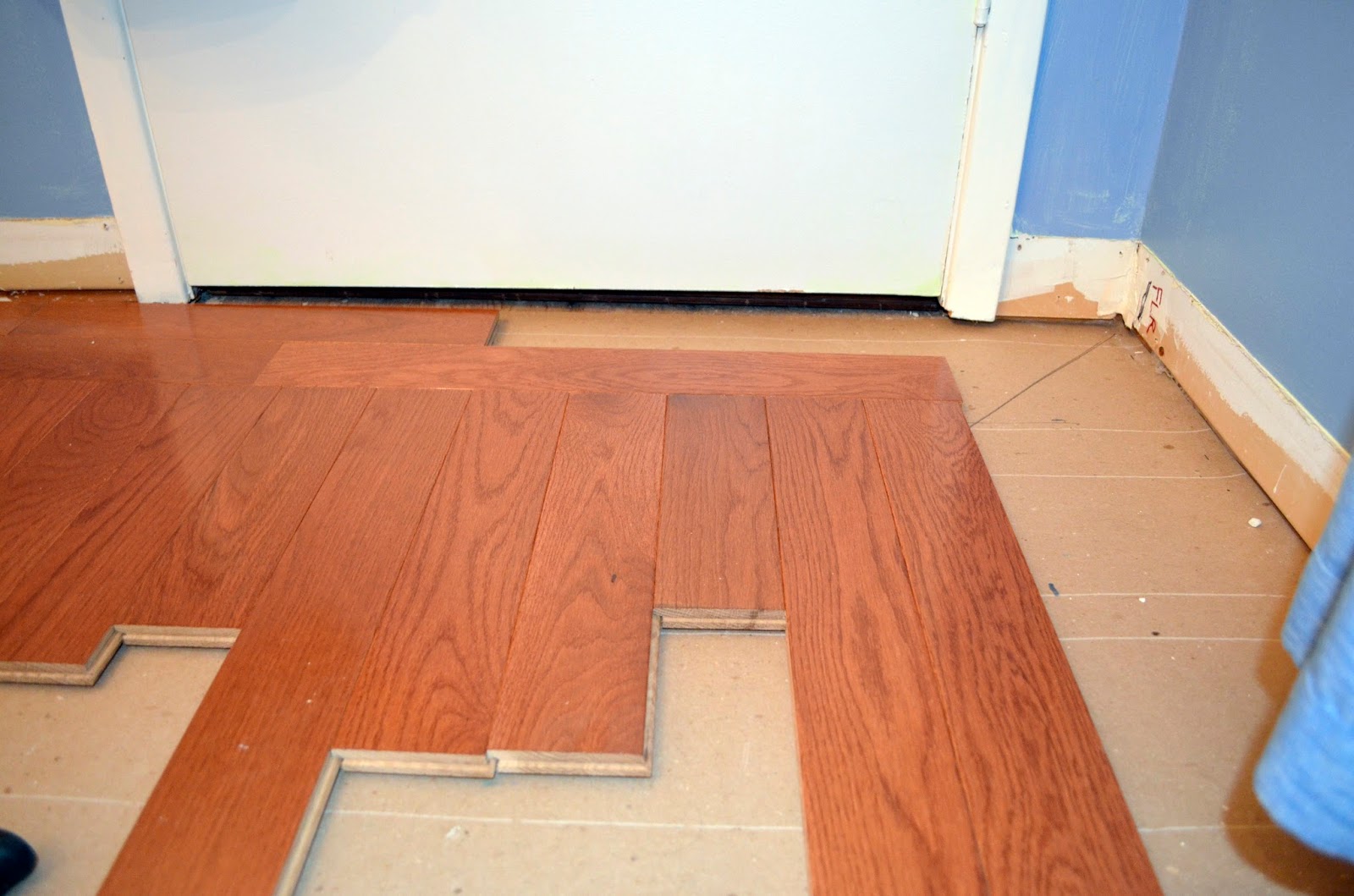With my corner pieces cut at 90°, it was time to actually start laying hardwood!